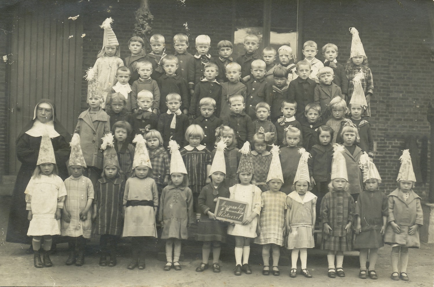 Meisjesschool Wuustwezel, bewaarklas, 2de rij, 1ste links: Sofie Van den Heuvel