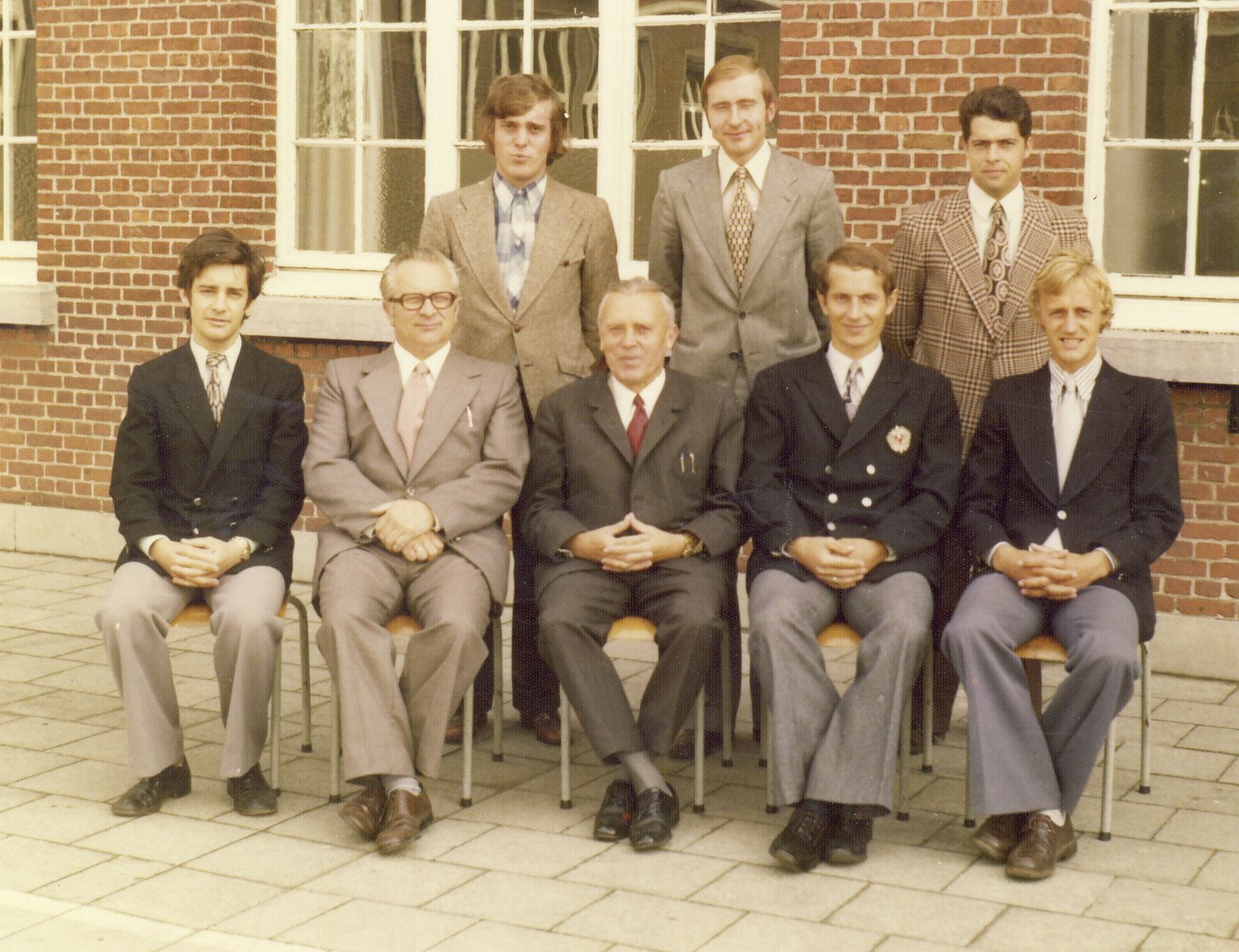 Zittend (van l naar r): Michel Van den Broeck, Sooi Philipsen, Jos Joosen, Eugeen Pauwels, Staf Vorsselmans. Staand (van l naar r): Guy Joosen, Rob Eggers en John Valgaeren.