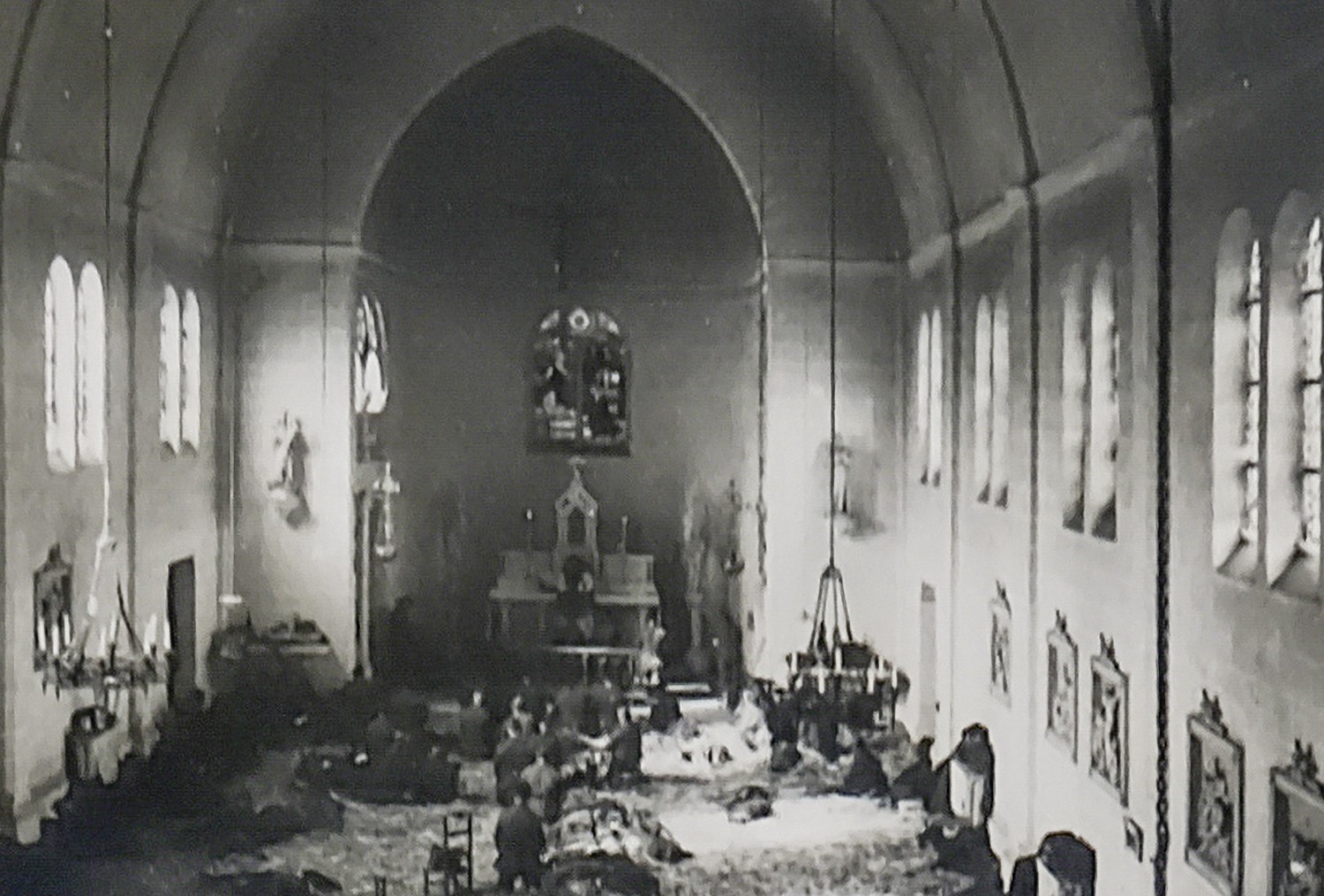 Verwoestingen in de kapel na WO II
