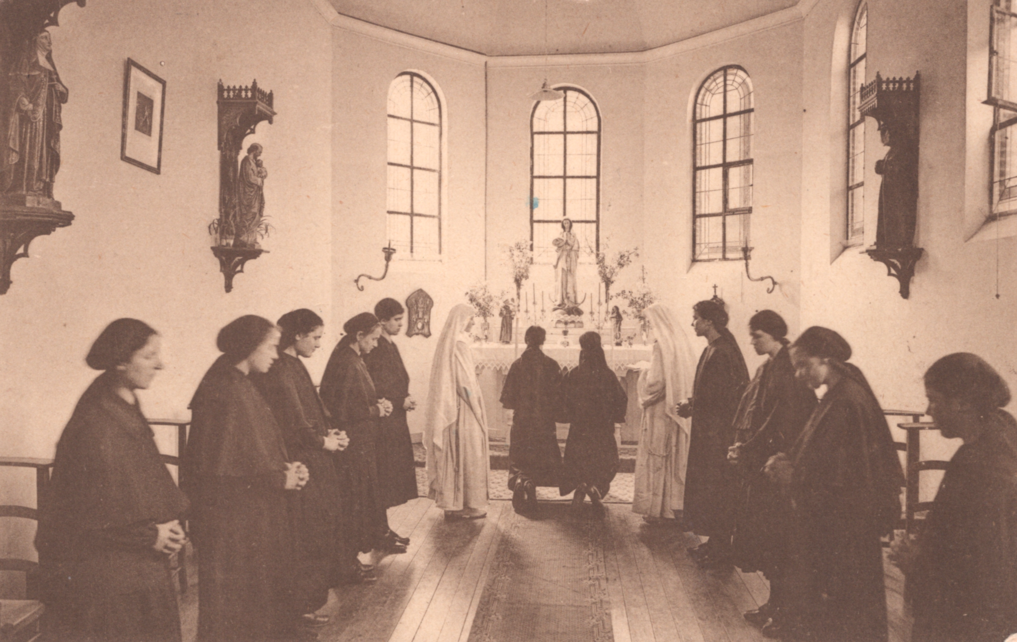 - Franciscanessen Missionarissen van Maria, Noviciaat te Gooreind - Wuestwezel, Prov. Antwerpen - De Novicen in de Kapel - Intrede der Postulanten