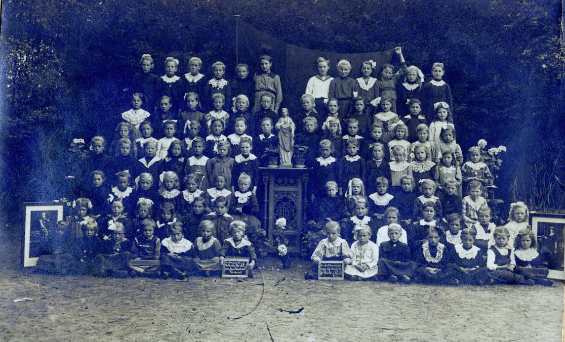 Oude schoolfoto's van de vrije basisschool van Gooreind centrum, vroeger 'de meisjesschool', nu 'Mater Dei'.