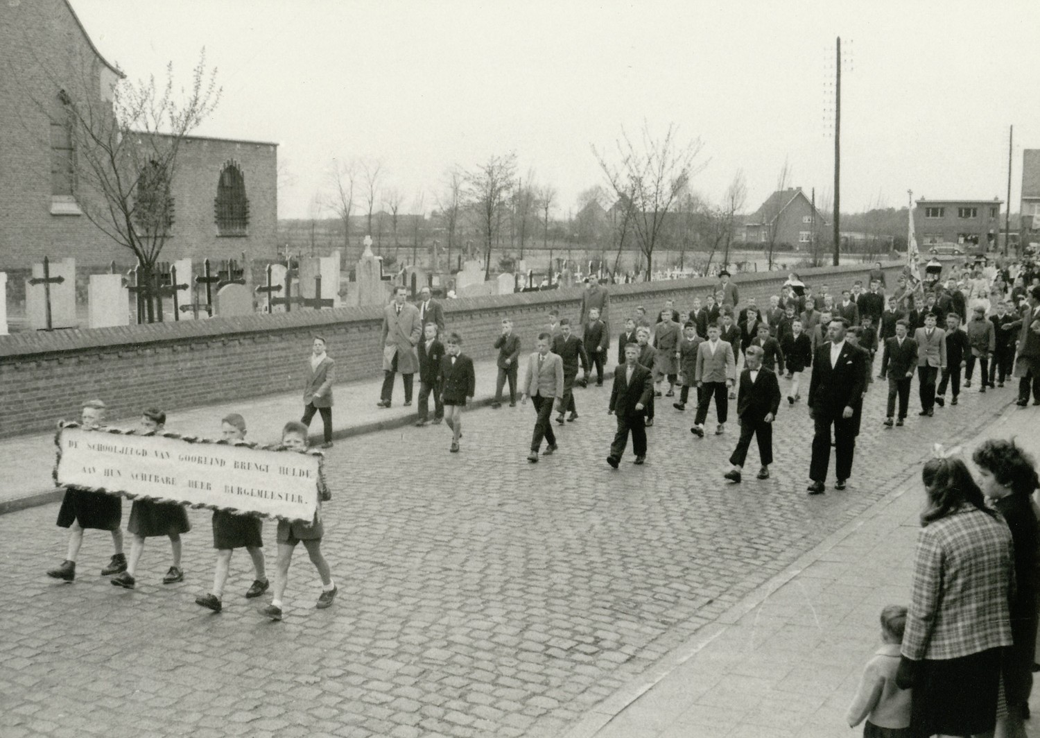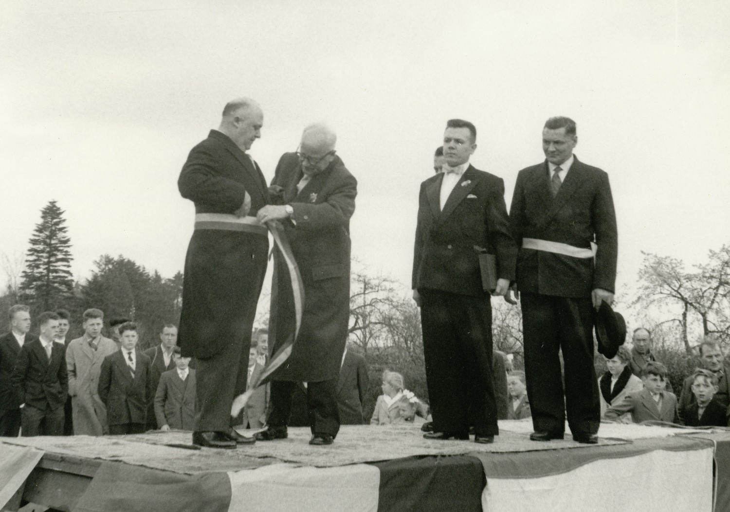 Inhuldiging van Jos Peeters als burgemeester in Wuustwezel. De verkiezingen vonden plaats eind 1958. De inhuldiging begin 1959.
