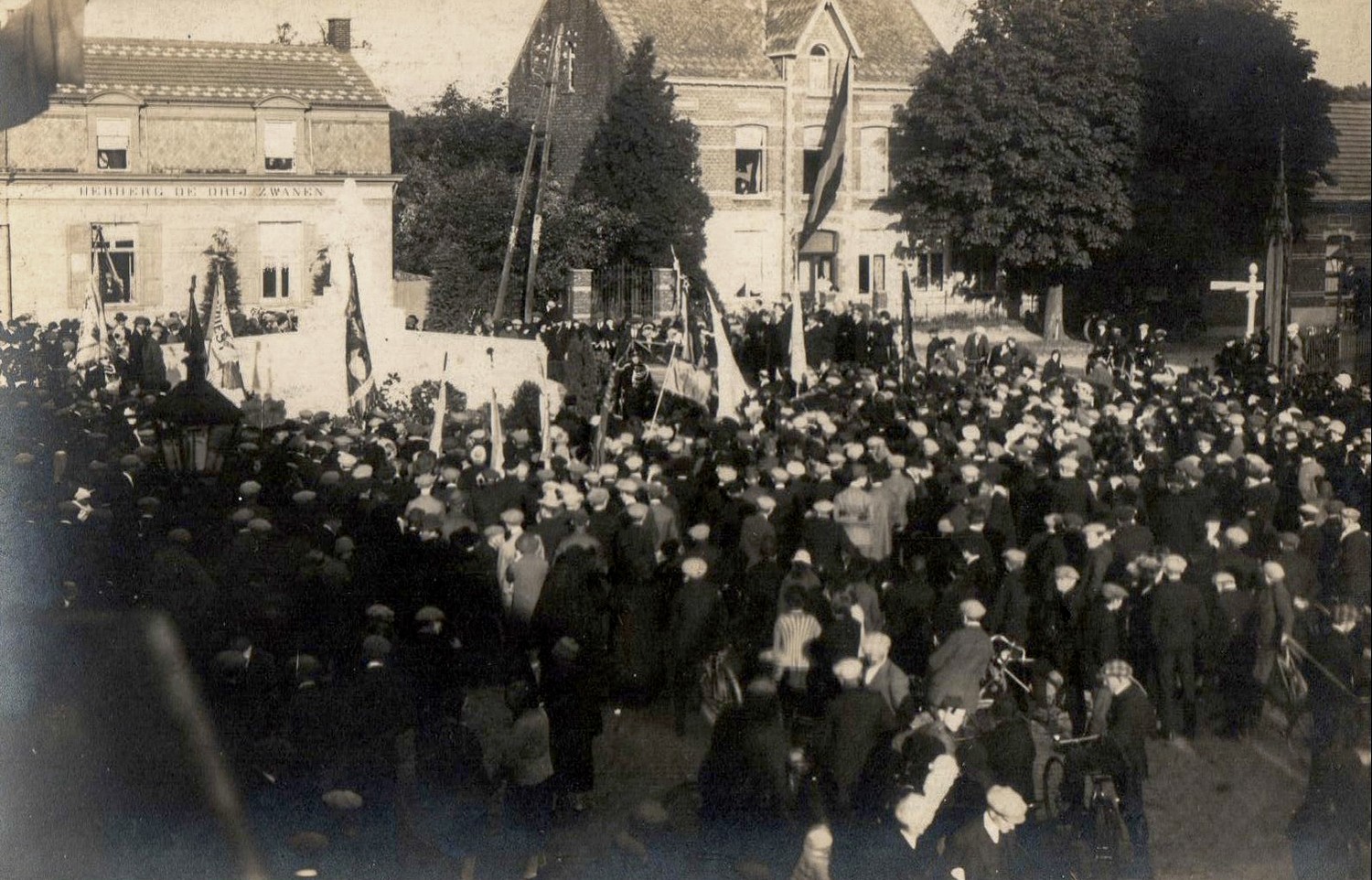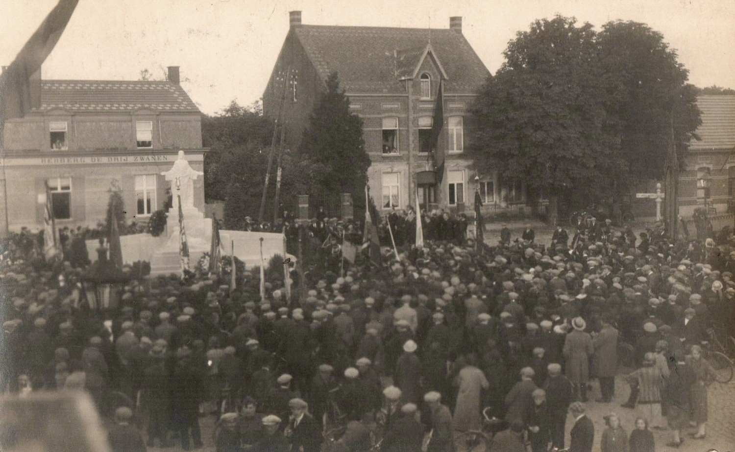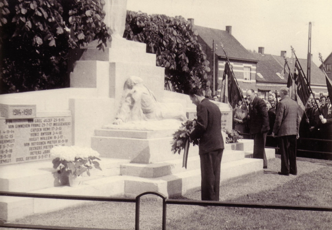 Monument der gesneuvelden - inhuldigingMonument van de gesneuvelden dat oorspronkelijk in de Dorpstraat stond tussen de kerk en het oud gemeentehuis (links achteraan op de foto).