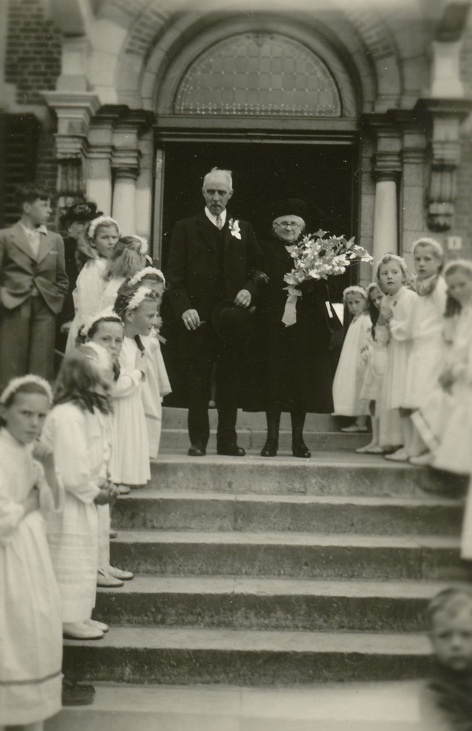 Foto's van de diamanten of gouden bruiloft van Wilhelmus Snepvangers en Anna Maria Josephina Pouillon. Wilhelmus Snepvangers : ° 1/2/1873 en + 7/4/1955 ; Anna Pouillon : ° 19/10/1876 en ° 17/4/1953.